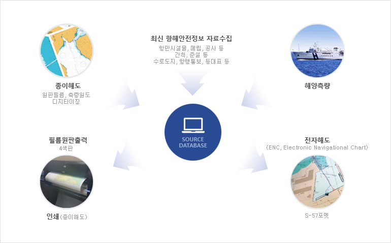 Electronic Navigational Chart (이하 "ENC"라 함)는 전자해도표시시스템(ECDIS)에서 사용하기 위해 종이해도에 표시된 해안선, 등심선, 수심, 항로표지, 위험물, 항로 등 선박의 항해와 관련된 모든 정보를 국제수로기구(IHO)의 표준에 따라 제작된 디지털해도를 말하며, 한국 ENCs는 국립해양조사원에 의해 제공 및 생산되고 있습니다.