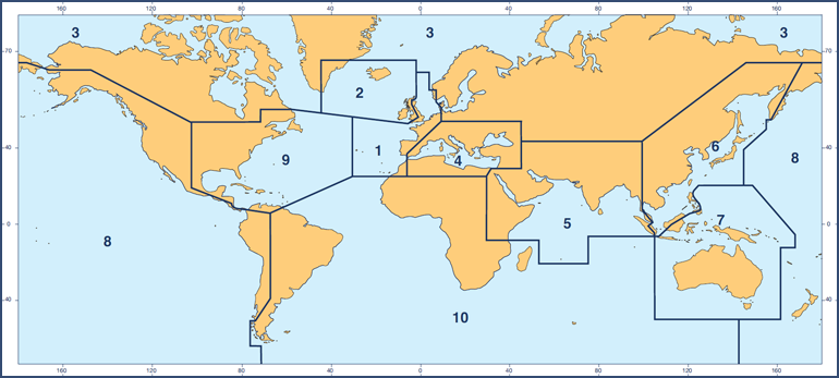 | RC 9 : North America (east coast) and Caribbean | RC10 : South Atlantic and Indian Ocean (southern part) |