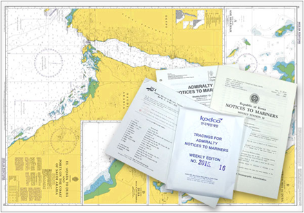 선박의 안전항해를 위하여 해도 및 항해도서지의 정정사항과 해상교통 안전과 관련된 정보